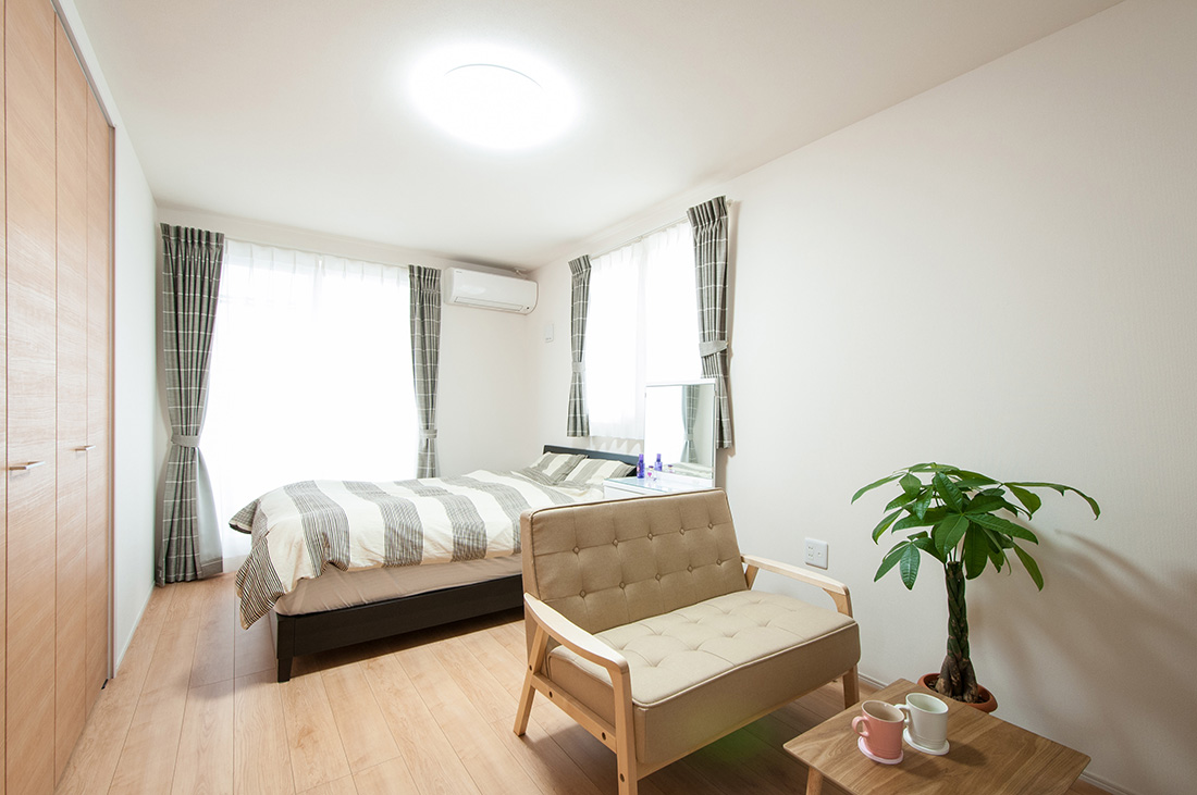 2階、小学6年のお嬢様の部屋。やや大きめのシングルベッドを置いてもゆとりがあり、採光もたっぷり。勉強の時間も充実しそう