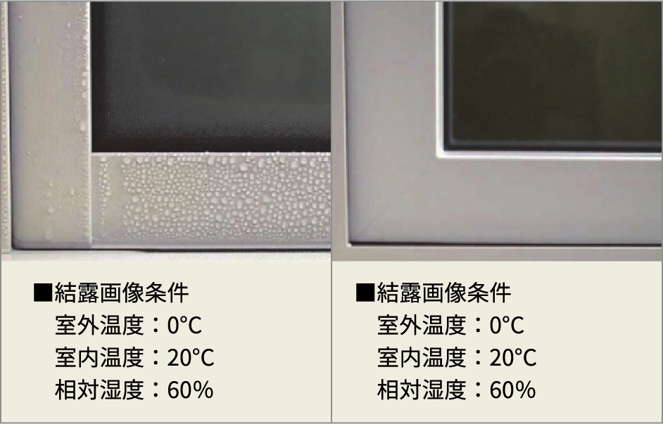 窓メーカーの実験によると、室内温度20℃、室外温度0℃の場合、フェニーチェホームが採用している樹脂窓は、結露が起こりませんでした。
